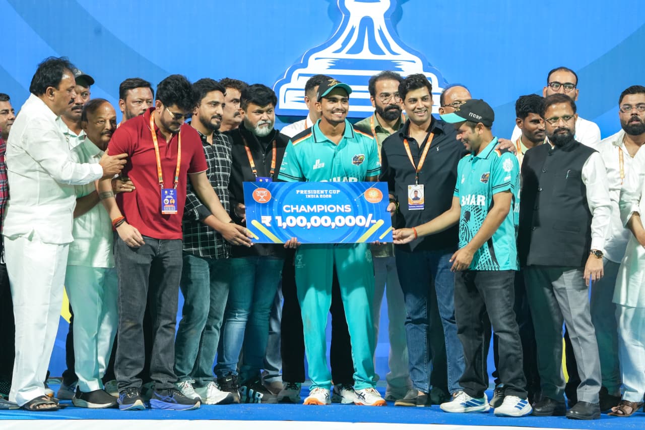 टेनिस क्रिकेट स्पोर्ट्स फेडरेशन ऑफ इंडियाच्या माध्यमातून गेल्या सहा दिवसांपासून ठाण्यातील दादोजी कोंडदेव स्टेडियममध्ये सुरू असलेल्या ‘प्रेसिडेंट कप – २०२६’ चा समारोप रविवारी अत्यंत उत्साहात आणि दिमाखदार सोहळ्याने झाला. अंतिम फेरीत बिहार ब्लास्टर्स संघाने चुरशीच्या लढतीत विजय मिळवत पहिल्यावहिल्या ‘प्रेसिडेंट कप’वर आपले नाव कोरले. (Bihar Blasters Crowned First-Ever Champions of ‘President Cup 2026’; Grand Closing Ceremony Held at Dadoji Konddev Stadium)