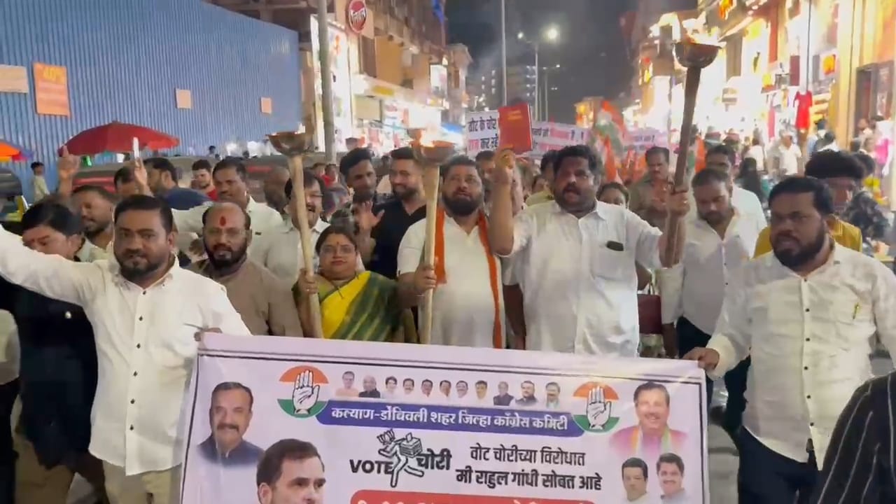 लोकसभा आणि विधानसभा निवडणुकीत सत्ताधारी भाजपकडून मोठ्या प्रमाणात मतांची चोरी झाल्याचा आरोप करत त्याच्या विरोधात कल्याणमध्ये जिल्हा काँग्रेसतर्फे आज कॅन्डल मार्च काढण्यात आला. (Congress takes out candle march in Kalyan, accusing BJP of vote-rigging)