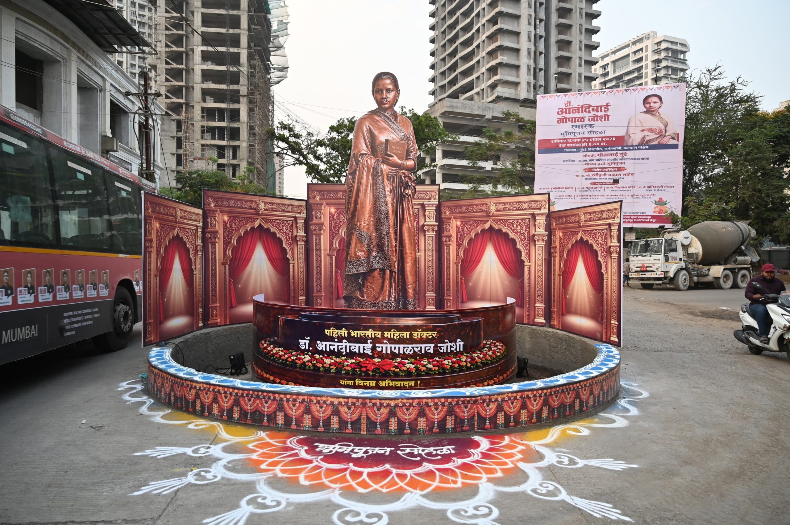 कल्याणकारांसाठी कालचा दिवस अतिशय अभिमानास्पद आणि सुवर्ण अक्षरांनी नोंद करण्यायोग्य ठरला. निमित्त होते ते देशातील पहिल्या महिला डॉक्टर आनंदीबाई गोपाळ जोशी यांच्या स्मारक भूमिपूजनाचे. या स्मारकासाठी राज्याचे उपमुख्यमंत्री एकनाथ शिंदे यांनी निधी उपलब्ध करून देत आपला शब्द पाळल्याने भाजप नेते आणि माजी आमदार नरेंद्र पवार यांच्या पाठपुराव्याला यश मिळाले. राष्ट्रीय स्वयंसेवक संघाच्या संरक्षिका गीताताई गुंडे यांच्या प्रमुख उपस्थितीत हा कल्याण पश्चिमेतील वसंत व्हॅली परिसरात हजारो कल्याणकरांच्या उपस्थितीत हा भूमिपूजन सोहळा संपन्न झाला. (Historic Moment for Kalyan: Grand Groundbreaking Ceremony of Memorial for India’s First Woman Doctor Dr. Anandibai Joshi)