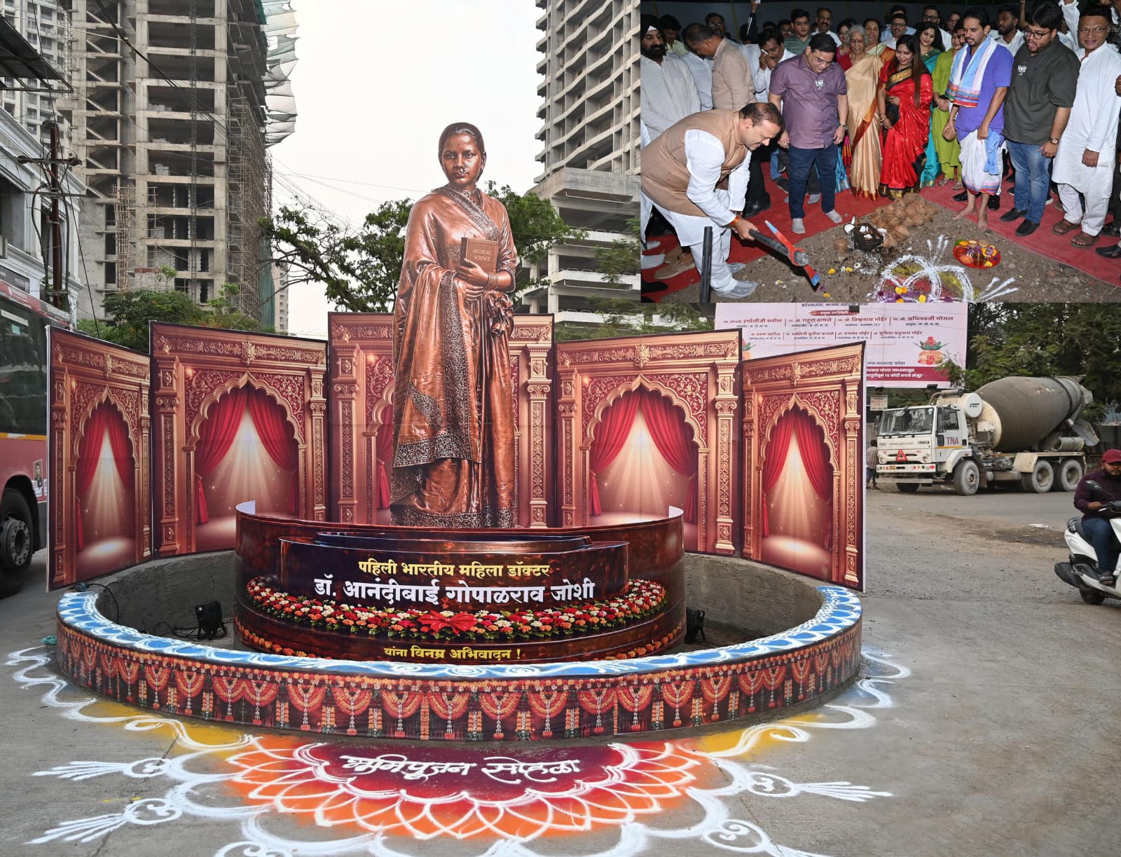कल्याणकारांसाठी कालचा दिवस अतिशय अभिमानास्पद आणि सुवर्ण अक्षरांनी नोंद करण्यायोग्य ठरला. निमित्त होते ते देशातील पहिल्या महिला डॉक्टर आनंदीबाई गोपाळ जोशी यांच्या स्मारक भूमिपूजनाचे. या स्मारकासाठी राज्याचे उपमुख्यमंत्री एकनाथ शिंदे यांनी निधी उपलब्ध करून देत आपला शब्द पाळल्याने भाजप नेते आणि माजी आमदार नरेंद्र पवार यांच्या पाठपुराव्याला यश मिळाले. राष्ट्रीय स्वयंसेवक संघाच्या संरक्षिका गीताताई गुंडे यांच्या प्रमुख उपस्थितीत हा कल्याण पश्चिमेतील वसंत व्हॅली परिसरात हजारो कल्याणकरांच्या उपस्थितीत हा भूमिपूजन सोहळा संपन्न झाला. (Historic Moment for Kalyan: Grand Groundbreaking Ceremony of Memorial for India’s First Woman Doctor Dr. Anandibai Joshi)