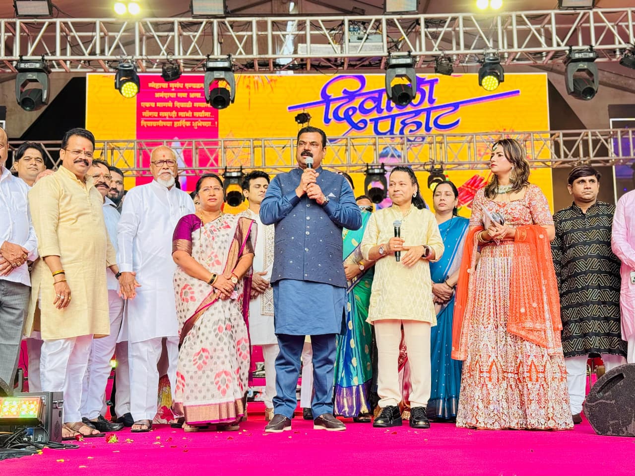 साई चौकात दरवर्षी होणारी `दिवाळी पहाट’ हा पारंपरिक सोहळा झाला आहे. या कार्यक्रमावर हजारो कल्याणकर रसिकांचे प्रेम आहे. रसिकांचे प्रेम असेपर्यंत, कल्याण शहराचा हा पारंपरिक सोहळा दरवर्षी नागरिकांना अनुभवता येईल, अशी ग्वाही माजी केंद्रीय राज्यमंत्री कपिल पाटील यांनी दिली. तसेच हजारो कल्याणकरांना दिवाळीच्या शुभेच्छा दिल्या. या वेळी कल्याणचा तरुण राज मिसाळ याच्या प्रदर्शित होणाऱ्या ऊत चित्रपटाच्या पोस्टरचे अनावरण करण्यात आले. अखेर जय जय महाराष्ट्र गीताने कार्यक्रमाची सांगता करण्यात आली. रेश्मा रमेश यांनी सूत्रसंचालन केले.