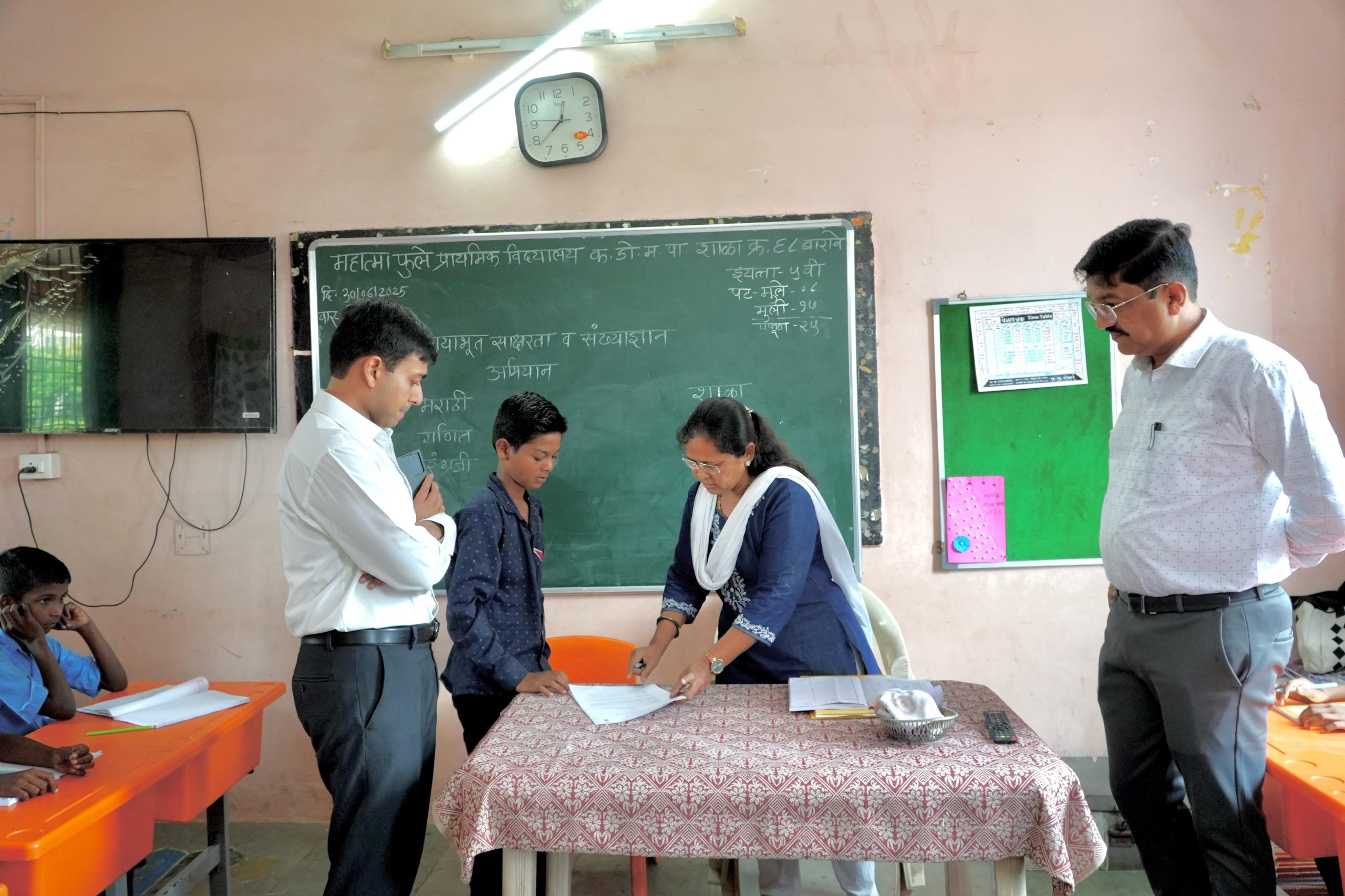 त्यासाठी प्रत्येक शाळानिहाय पालक अधिकाऱ्याची नेमणूक करण्यात आली असून या पालक अधिकाऱ्यांनी स्वत: शाळेत जावून या पायाभूत चाचणीची पाहणी केली. महापालिका आयुक्त अभिनव गोयल यांनी पालकत्व स्विकारलेल्या सिंडेकेट येथील शाळा क्र. 95/8 या ऊर्दु शाळेत, बारावे येथील शाळा क्र. 68 आणि बारदान गल्ली येथील ऊर्दु आणि मराठी शाळेला समक्ष भेट देवून या पायाभूत चाचणी परिक्षेची पाहणी केली. इतकेच नाही तर स्वत: खडू हातात घेवून यावेळी विद्यार्थ्यांची शिकवणीही घेतली.