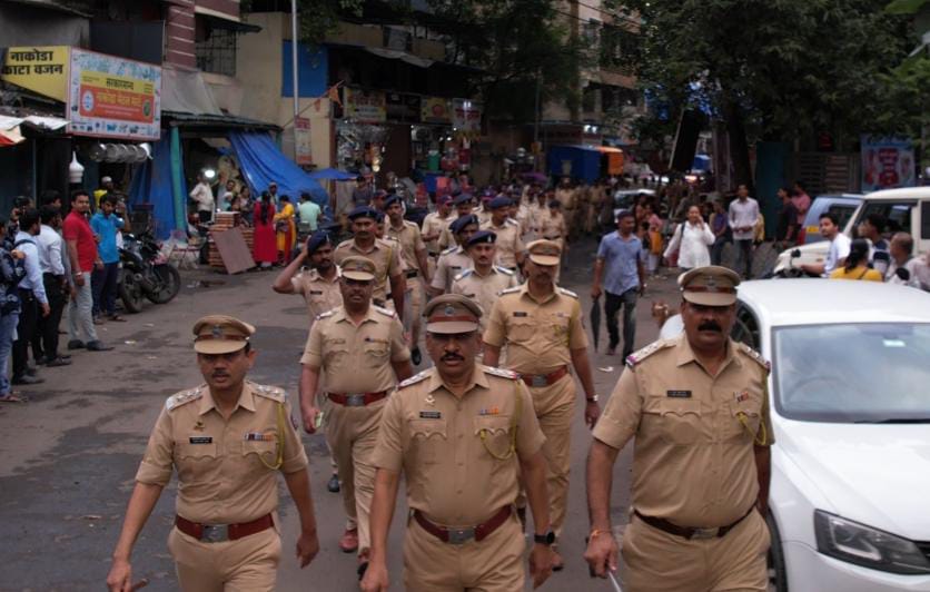 येत्या काही दिवसांमध्ये विविध धर्मियांचे महत्त्वाचे सण-उत्सव साजरे होणार आहेत. या पार्श्वभूमीवर कल्याणचे डीसीपी अतुल झेंडे आणि एसीपी कल्याणजी घेटे यांच्या मार्गदर्शनाखाली शुक्रवारी सायंकाळी कल्याण पश्चिमेत भव्य असा रूटमार्च काढण्यात आला. शहरातील कायदा – व्यवस्था अबाधित असून कोणत्याही अनुचित प्रकाराला रोखण्यासाठी पोलीस दल सज्ज असल्याचा संदेश या रूट मार्चमधून देण्यात आला. (Police take out a grand route march in Kalyan; Organized in the backdrop of upcoming festivals)